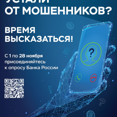 Банк России предлагает гражданам и представителям бизнеса пройти опрос, направленный на определение степени удовлетворенности населения уровнем безопасности финансовых услуг, оказываемых организациями кредитно-финансовой сферы. Важной составляющей опроса является получение актуальной статистической информации о лицах, пострадавших от кибермошенничества для определения форм профилактики и способов работы по предотвращению данного вида правонарушений.